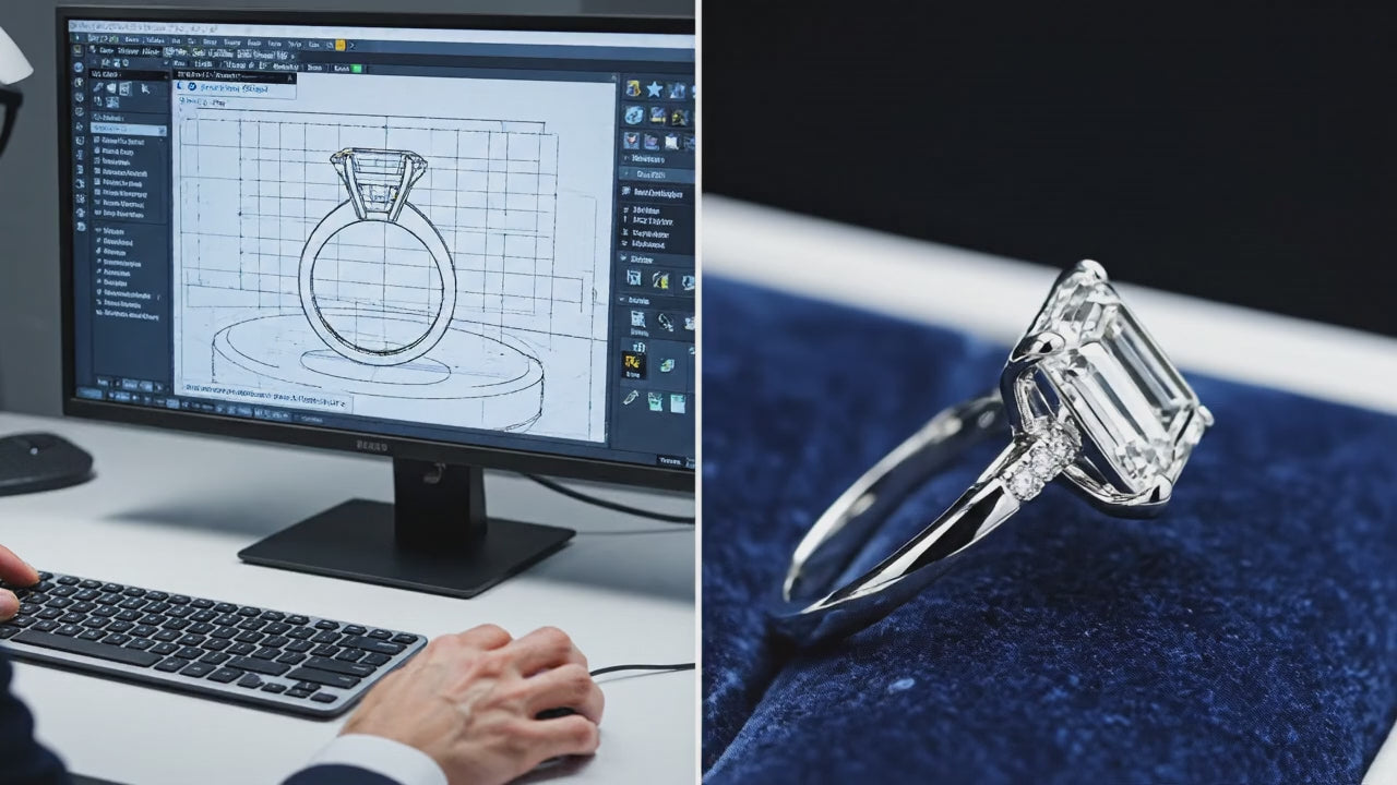Each custom piece begins with a detailed design process tailored to your vision. We collaborate with a specialized CAD studio to create precise digital renderings of your ring, allowing you to review proportions, settings, and details before production begins. Together, we refine the design through revisions until every element feels exactly right.
