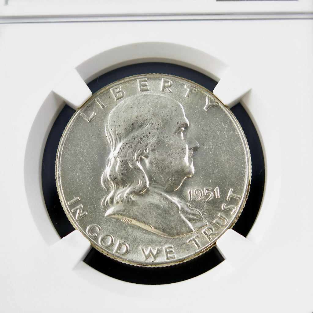 The Franklin Half Dollar was struck from 1948 to 1963, honoring Benjamin Franklin and replacing the Walking Liberty design. Among its most popular collectible varieties is the “Bugs Bunny” die clash, which creates the illusion of prominent teeth on Franklin’s portrait. While most famously associated with 1955, the 1951 issue is also known for this clash, though scarcer. This certified AU58 example balances strong detail and affordability, making it a desirable addition to both Franklin collections and variety sets.
