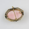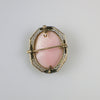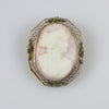 This vintage pendant is crafted in 10K yellow gold and features a delicately carved shell cameo depicting a woman in profile. The cameo is framed by a filigree border with fine floral detailing, giving the piece an elegant and timeless character.