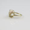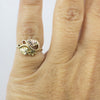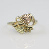 This 10K yellow and rose gold leaf ring is a petite and elegant design, perfect as a pinkie ring or stacking accent. The sculpted leaf motif combines warm yellow and rosy gold tones, adding dimension and natural beauty to the piece. Measuring 9.4MM across the top and weighing 1.3 grams, it’s a lightweight yet durable design ideal for everyday wear. This ring offers a timeless and versatile style that pairs beautifully with other gold jewelry.