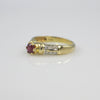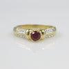 This luxurious 22K yellow gold ring showcases a rich 4.4 MM natural ruby flanked by brilliant natural diamonds totaling .09 CTW. The intense red of the ruby is beautifully complemented by the warm glow of high-karat gold and the sparkle of F-color, SI2-clarity diamonds. Measuring 4.3 MM wide and weighing 4.3 grams, this piece balances refined elegance with exceptional craftsmanship — a perfect choice for a ruby lover, collector, or someone seeking an heirloom-quality piece.