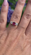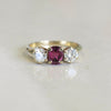 Perfect as an alternative engagement ring or meaningful anniversary gift, this piece carries timeless appeal and gemstone beauty. Please note: one of the diamonds has a small chip concealed under the prong, and the pricing reflects this condition.