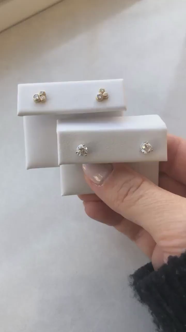 14K Gold Trio Diamond Stud Earrings | Bezel Cluster Dainty .21ctw