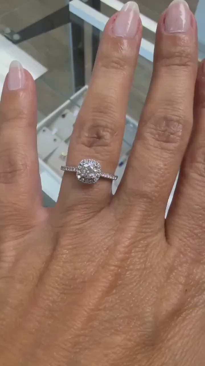 Combining classic design with a modern, feminine touch, this dainty halo ring is perfect as an engagement ring or a special anniversary gift. Its refined sparkle and timeless style make it a piece to treasure for a lifetime.