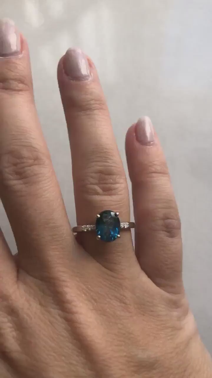 14K White Gold Oval Blue-Green Topaz & Diamond Ring | 9x7mm Alternative Engagement or Gift Size 7