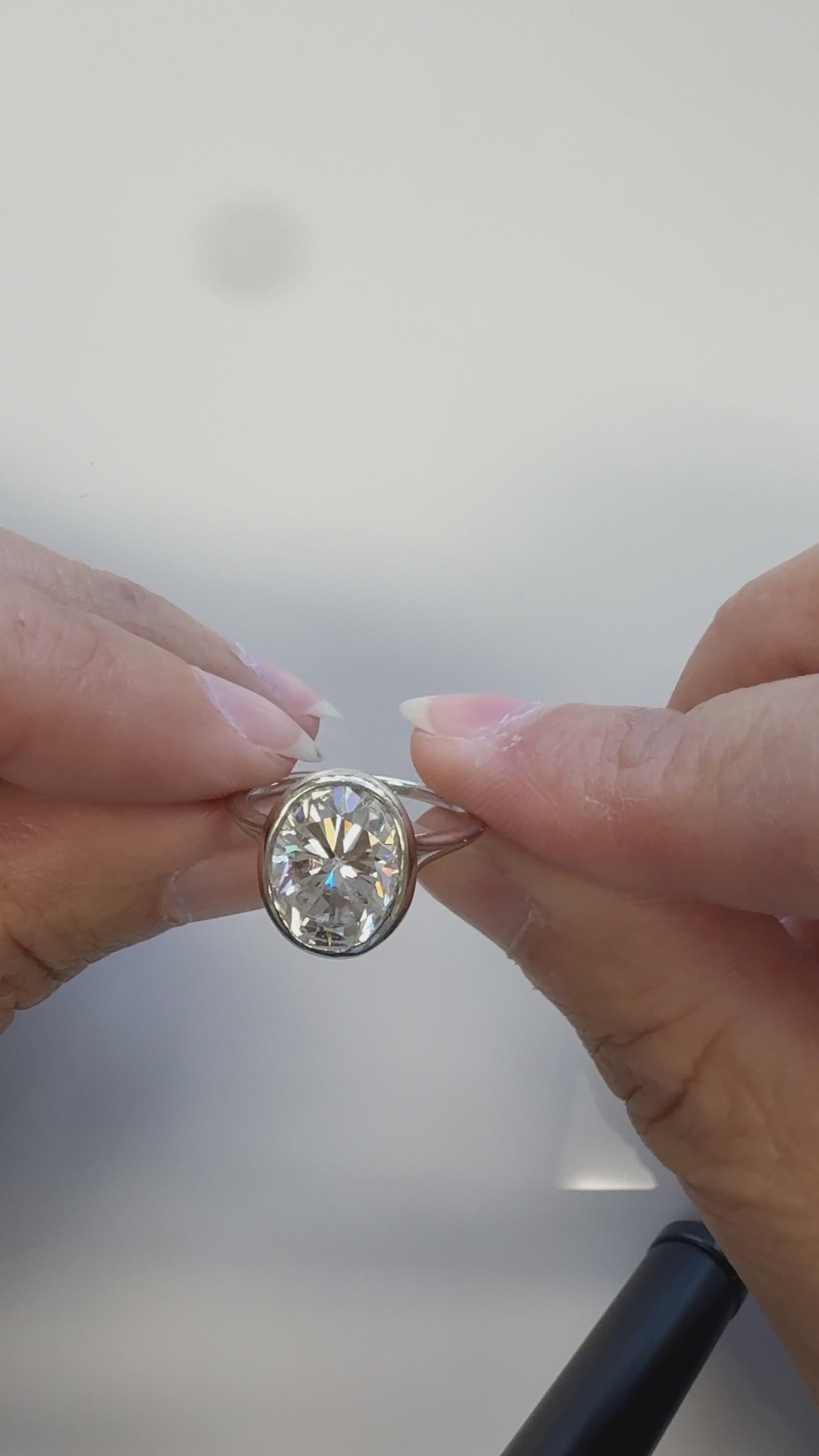 14K White Gold Oval Moissanite Solitaire Ring – 11x9 Bezel Set – Size 5.75
