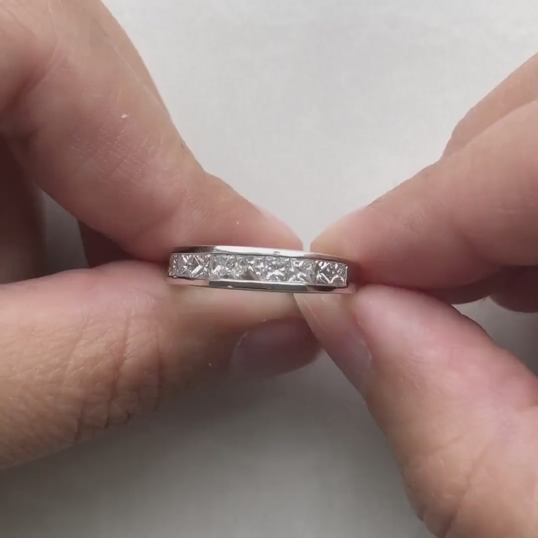 14K White Gold Princess Cut Diamond Band – 1.00 CTW Channel Set, Size 6.75