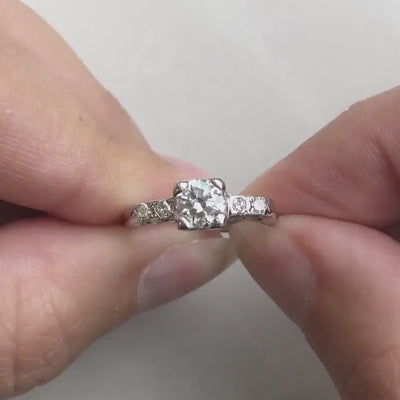 14K White Gold Vintage Diamond Engagement Ring, .56 CTW, Round Brilliant & Single Cut, Size 4.75, Classic Antique Style