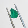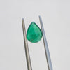This natural emerald displays a beautiful medium green color and is cut into a classic pear shape, measuring 5.8 x 7.8 mm. Like most emeralds, it has been treated to enhance stability and appearance — a common and accepted practice for this gemstone.